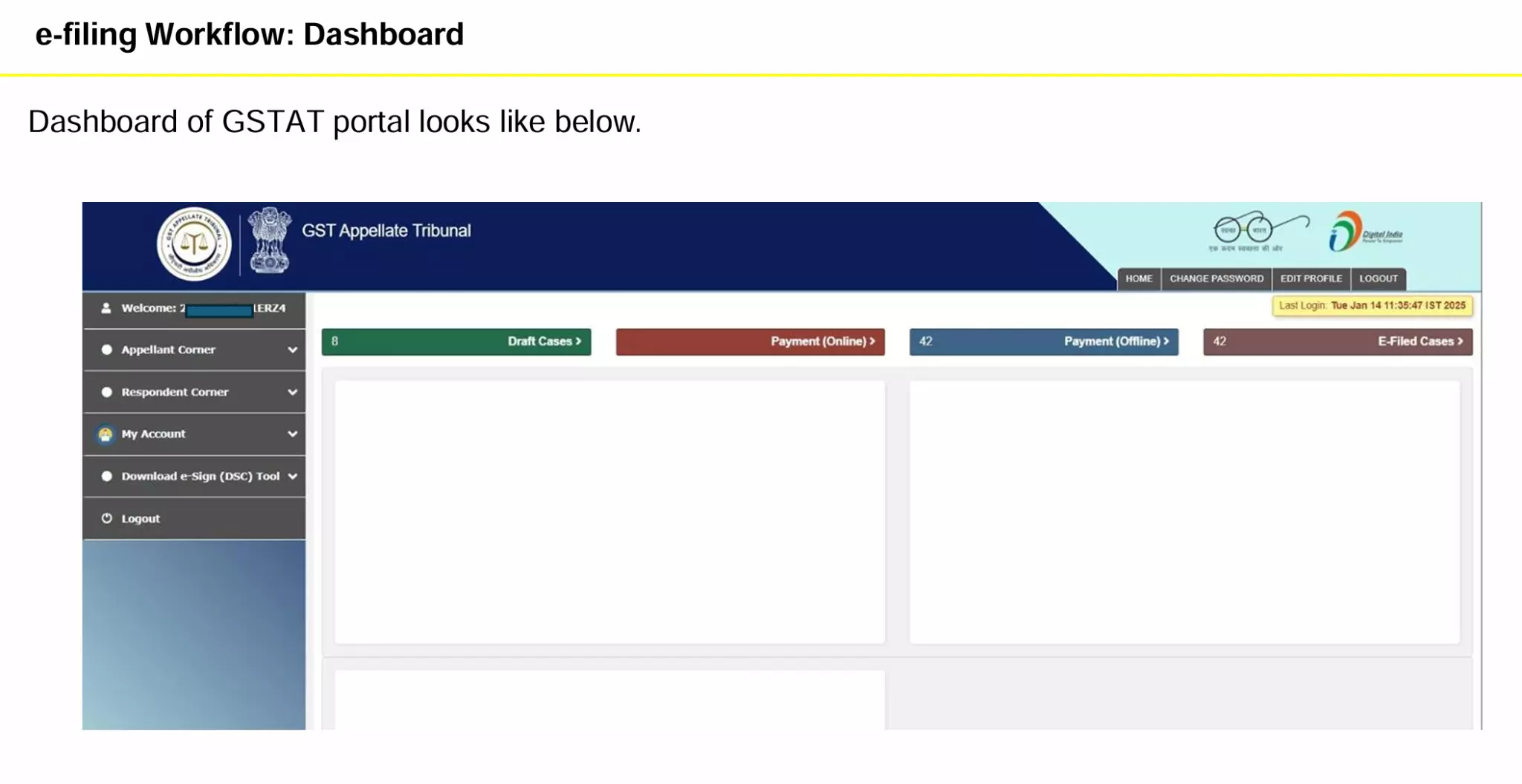 From Dashboard → Click Appellant Corner → Filing → Appeal Filing.