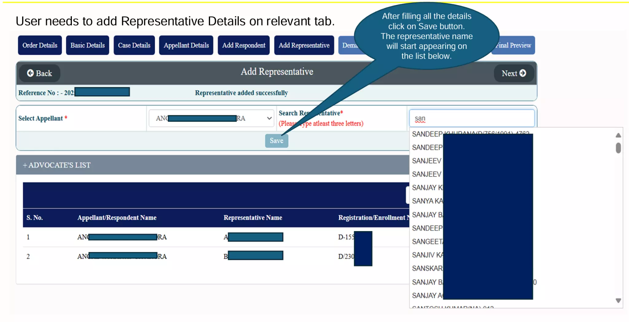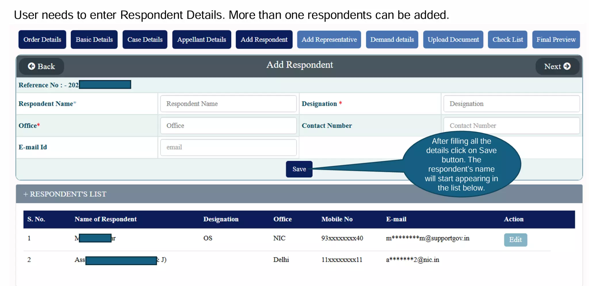 Add Respondent(s). Multiple entries allowed.