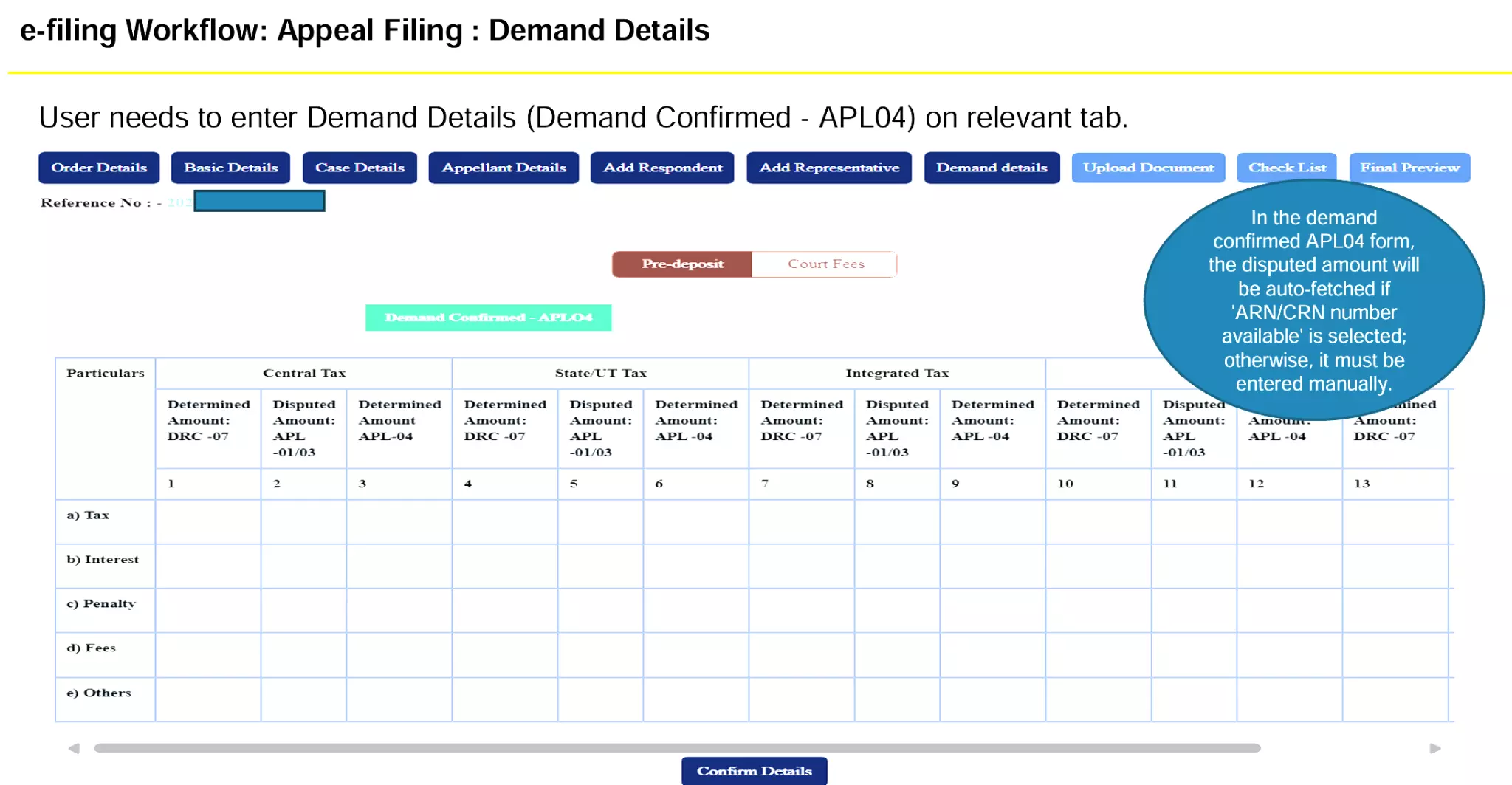 Enter Demand Confirmed (APL-04) and Demand Admitted & Disposed.