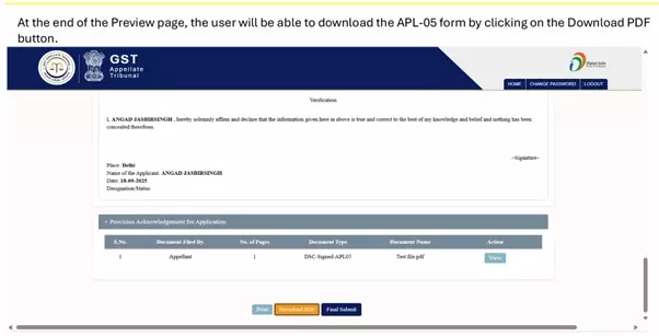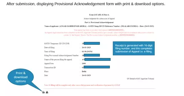 System generates 16-digit filing number with Provisional Acknowledgement (downloadable).