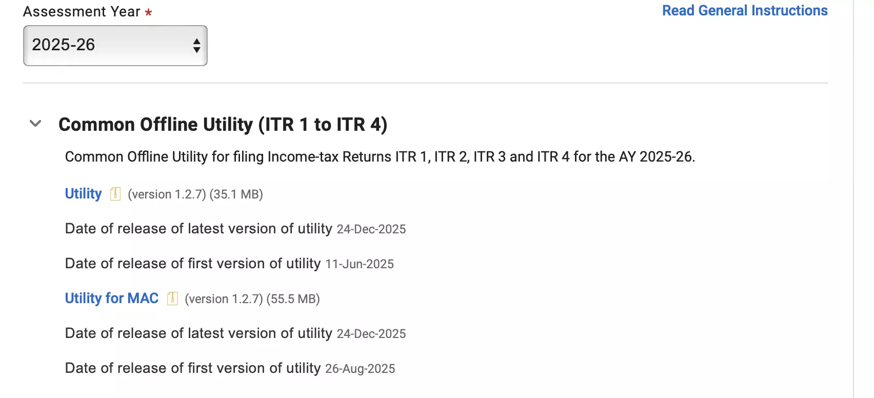 The Central Board of Direct Taxes ( CBDT ) has released the offline Income Tax Return ( ITR ) utilities for the Assessment Year ( AY ) 2025-26. The same was released on 24th December 2025.
